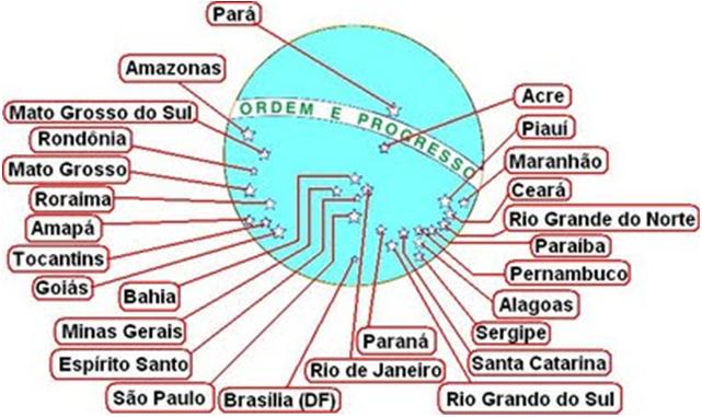 Dentro da esfera está representado o céu do Rio de Janeiro, com a constelação do Cruzeiro do Sul, às 8:30 horas de 15 de novembro de 1889, dia da Proclamação da República. As estrelas foram inspiradas nas que, realmente, brilhavam no céu do Brasil, na histórica madrugada de 15 de novembro de 1889.